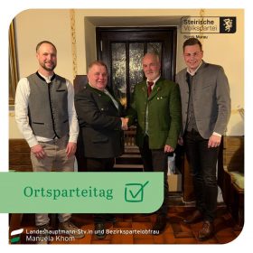 Beim außerordentlichen Ortsparteitag im Gasthof Hirschenwirt in Schöder kam es zu einer Staffelübergabe. Nach einem großartigen Rückblick und Resümee über die Geschehnisse in Gemeinde und Partei der letzten Jahre von Bürgermeister a.D. Rudi Mürzl wurden die Weichen auch innerhalb der Schöderer Volkspartei neu gestellt. Bürgermeister Klaus Kollau wurde von den zahlreichen anwesenden Delegierten mit 100% zum neuen Parteiobmann der Ortsgruppe Schöder gewählt. Anschließend konnte er sein Team für die kommende Gemeinderatswahl vorstellen und nominieren. Ein buntes 21-köpfiges Team mit einer breiten Vielfalt geht gemeinsam mit ihm als Spitzenkandidat am 23. März ins Rennen. Schöder gestalten und entwickeln 3 so das Motto für die kommende Periode.